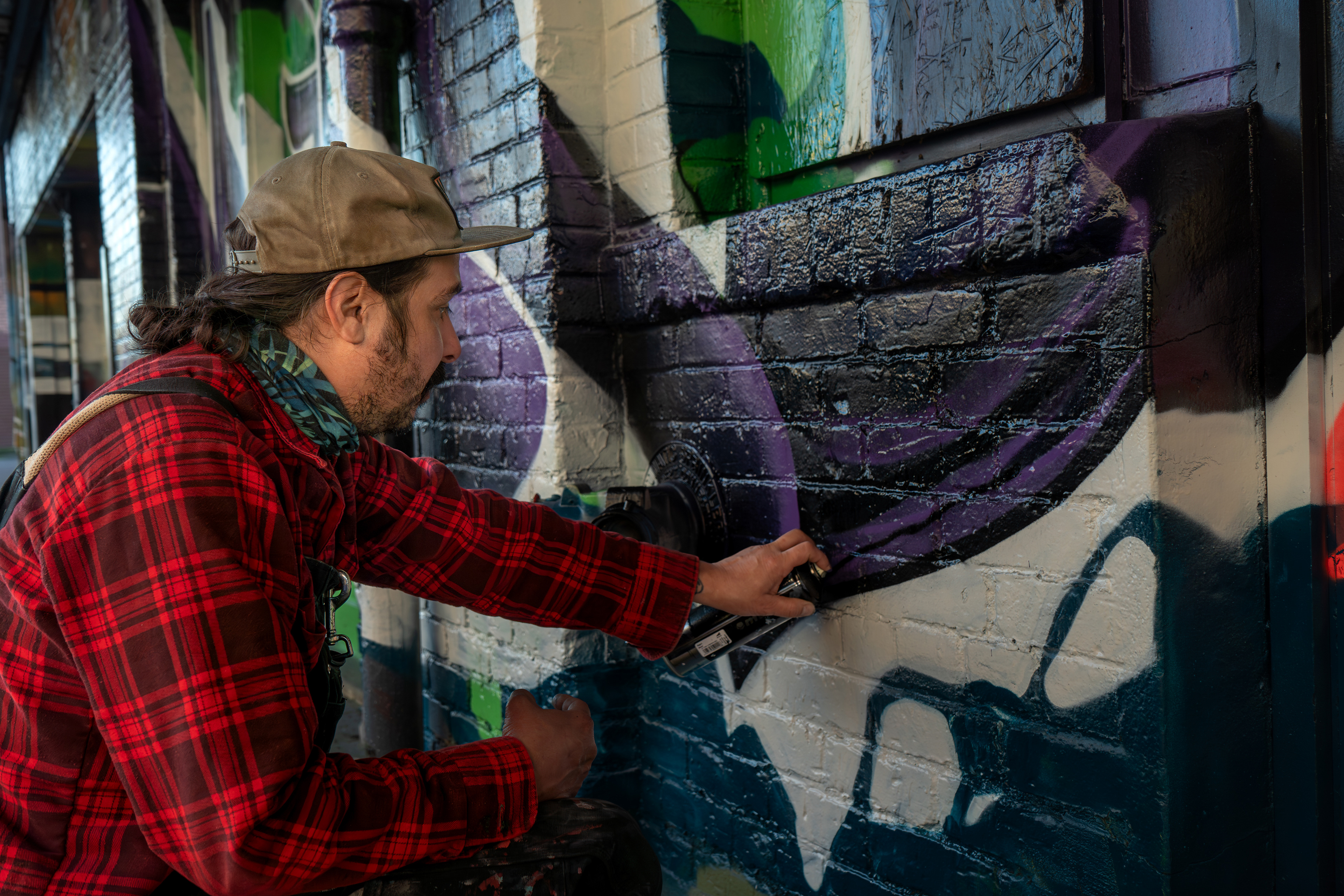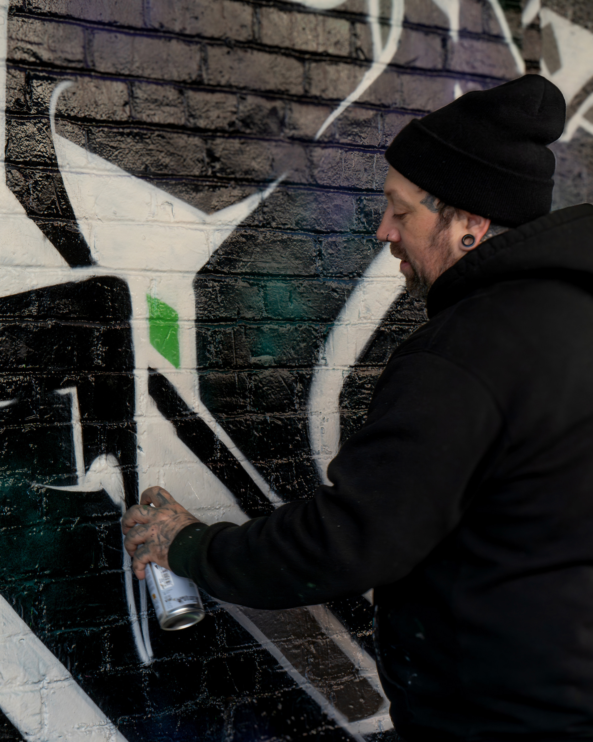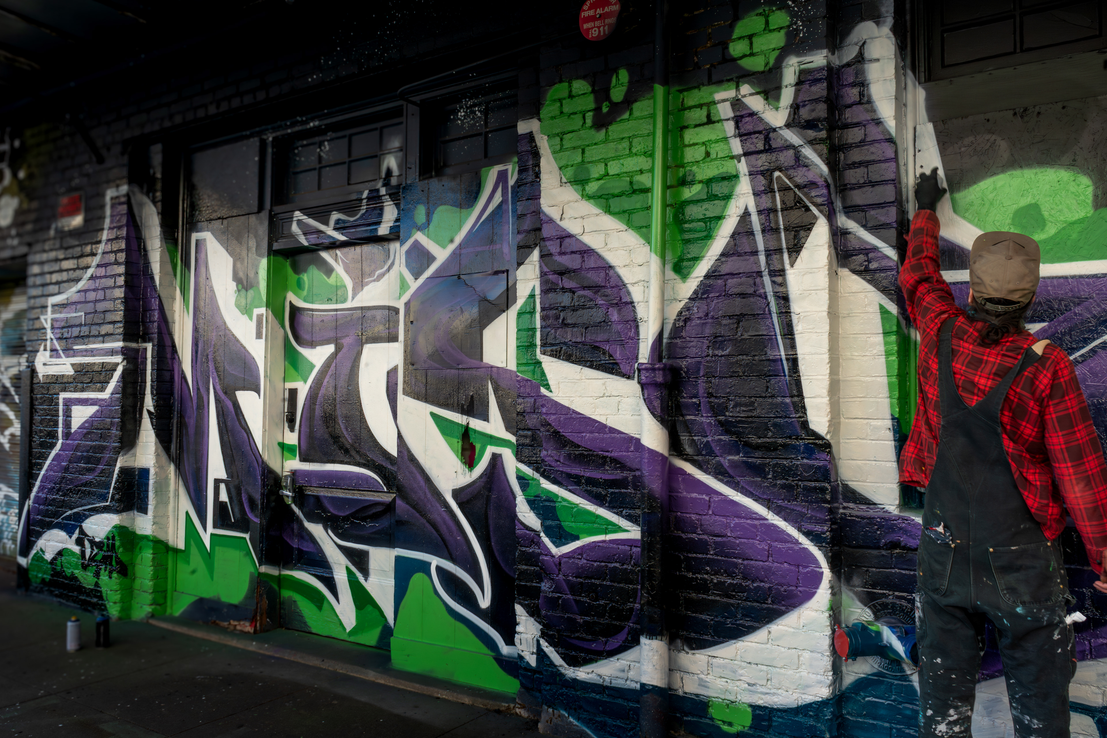 Portland-based muralist Dre was commissioned by a property owner in downtown Portland to paint a large-scale graffiti mural. He invited me to document the process — a full day spent alongside the artists as they worked, capturing the scale, the detail, and the physical commitment that goes into making something this large on a wall.