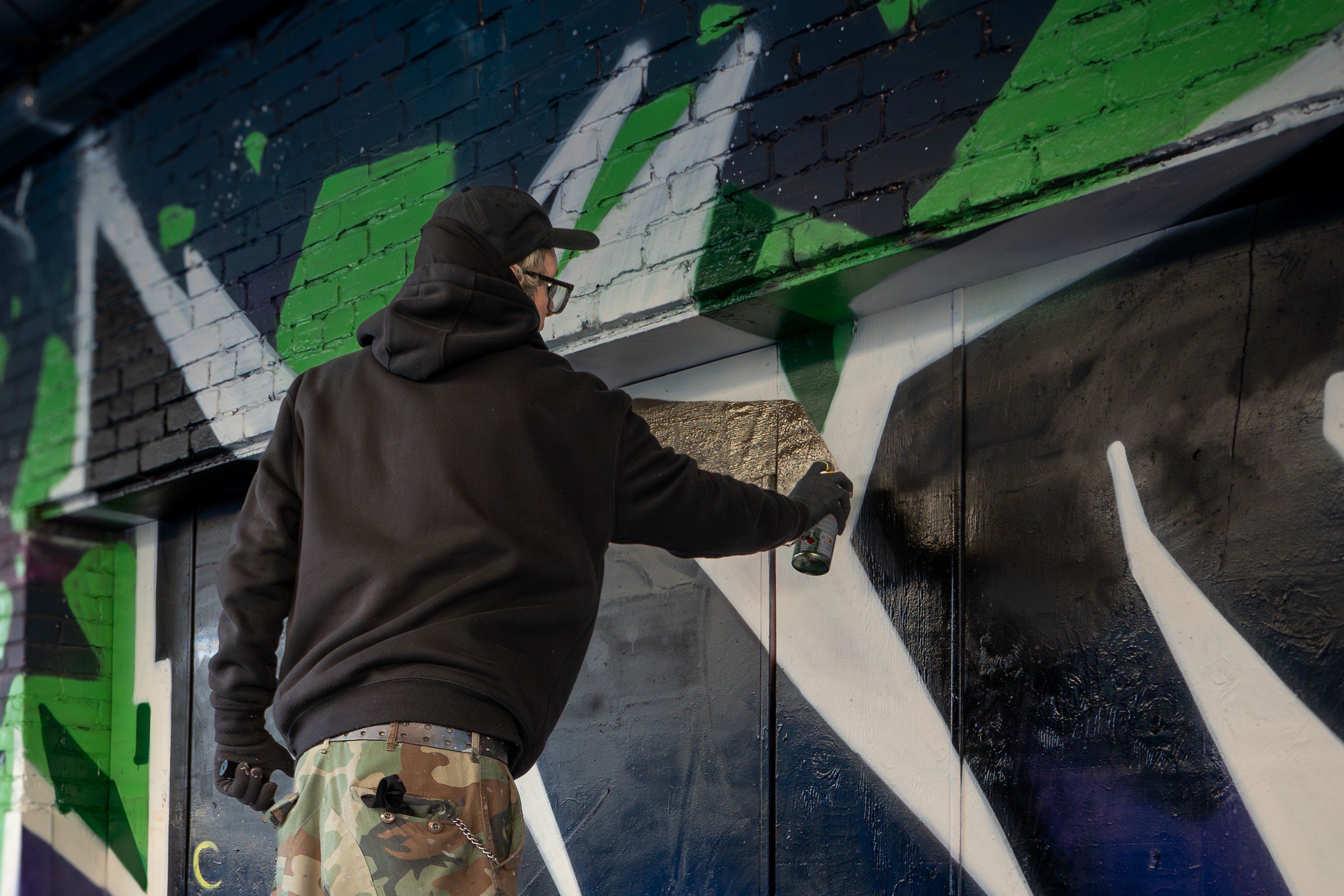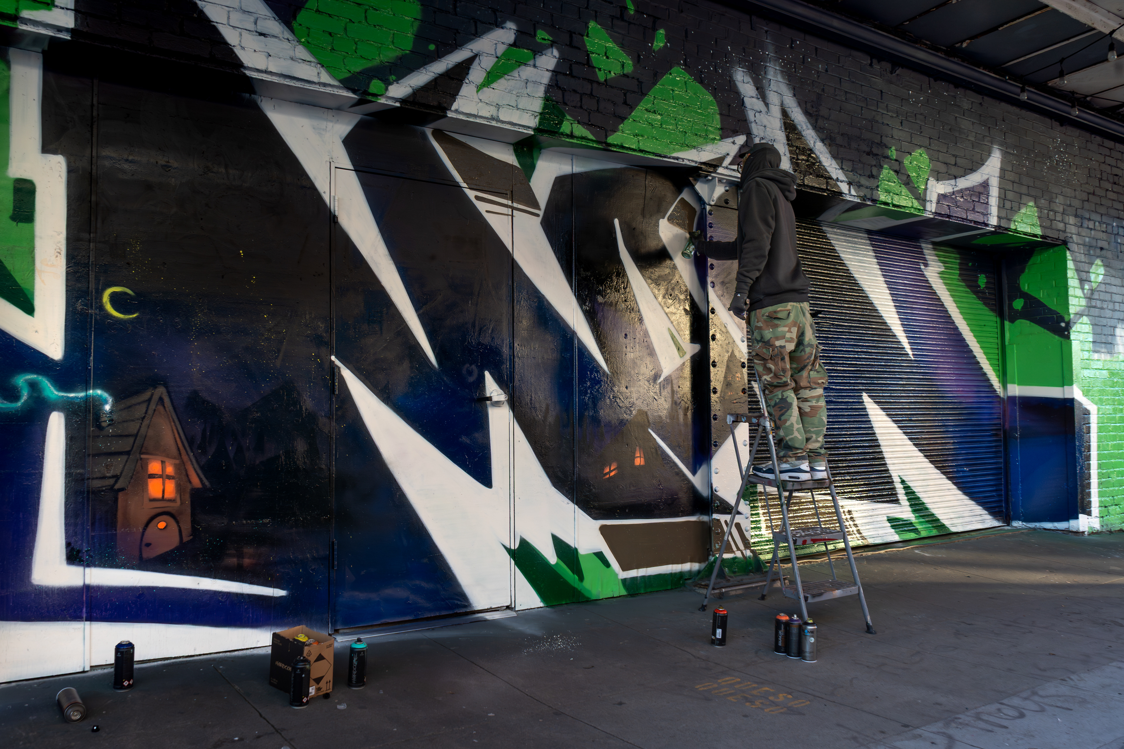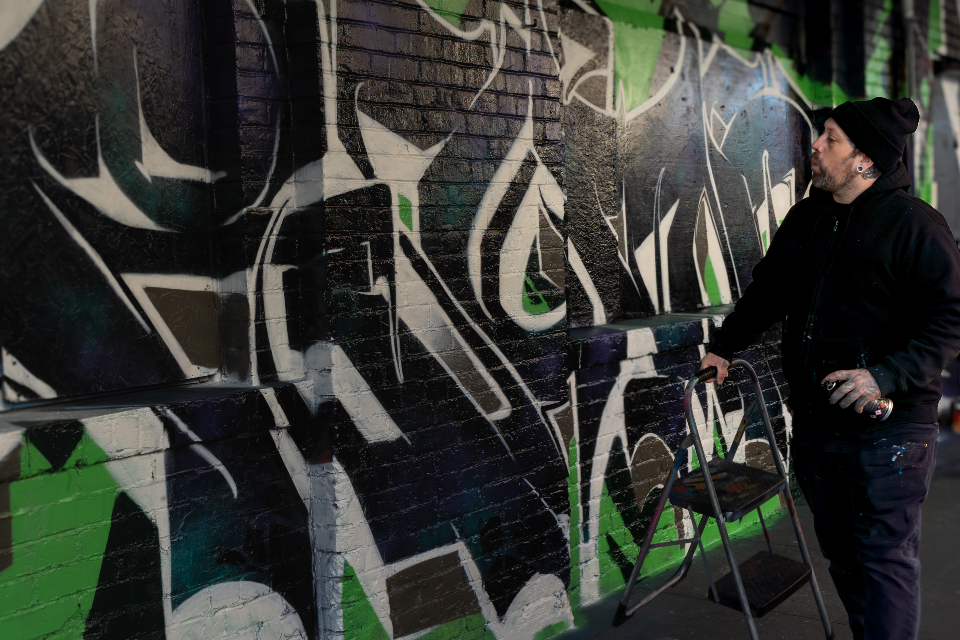 Portland-based muralist Dre was commissioned by a property owner in downtown Portland to paint a large-scale graffiti mural. He invited me to document the process — a full day spent alongside the artists as they worked, capturing the scale, the detail, and the physical commitment that goes into making something this large on a wall.